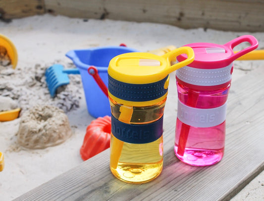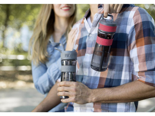 Sticlă cu pai din tritan, fără BPA, 600 ml, Roz cu Gri-Boddels
